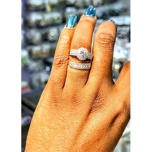 Celebrate everlasting feelings of love with this beautifully crafted wedding set. Its a beautiful 2 piece ring that guarantees durability for years so be confident to flaunt and show your fingers wherever whenever.